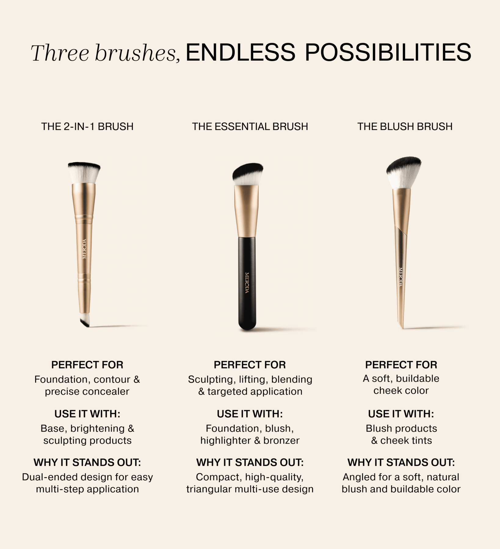 Meet The Essential Brush - designed to blend like a dream. The unique triangular shape fits every contour, making it easy to reach the under-eye area with precision, while dense bristles create a seamless, second-skin finish.